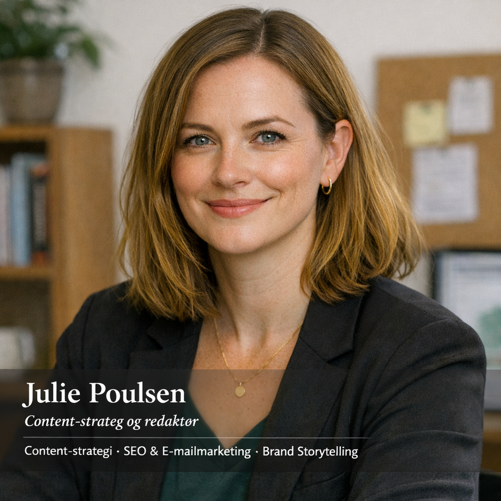 2. En præcis målgruppe Ikke “virksomheder i Danmark” eller “folk der er interesserede i marketing”. En præcis målgruppe er en person — eller i det mindste en type person. Hvad ved de allerede? Hvad ved de ikke? Hvad bekymrer dem? Hvad motiverer dem? Jo mere konkret beskrivelsen er, jo lettere er det at skrive indhold der rammer.